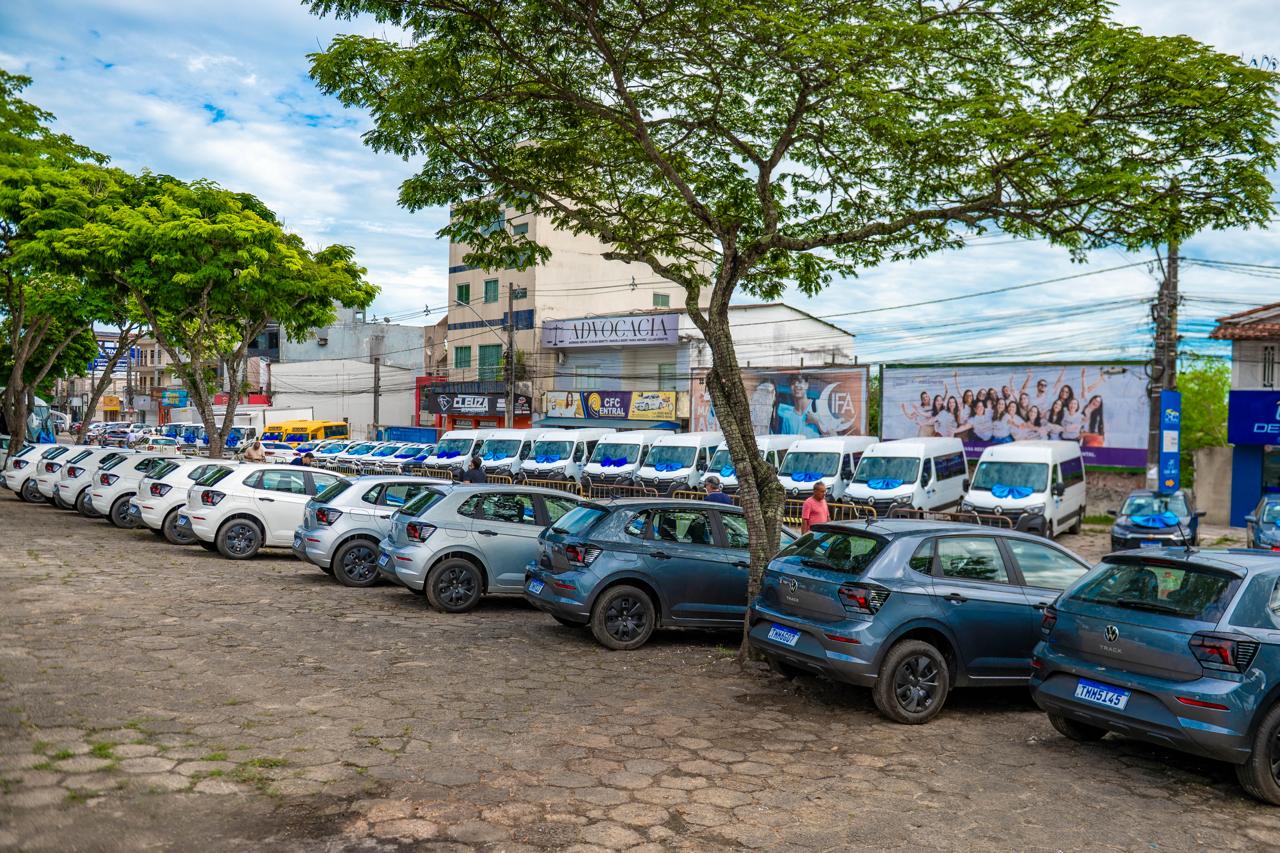 Ao todo, foram entregues mais de 60 veículos, entre carros, vans, motos, ônibus escolares, caminhões baú e caminhões frigoríficos. A nova frota passa a atender diferentes demandas do sistema educacional, desde o transporte de estudantes até o apoio às equipes administrativas e a distribuição de insumos para as escolas.